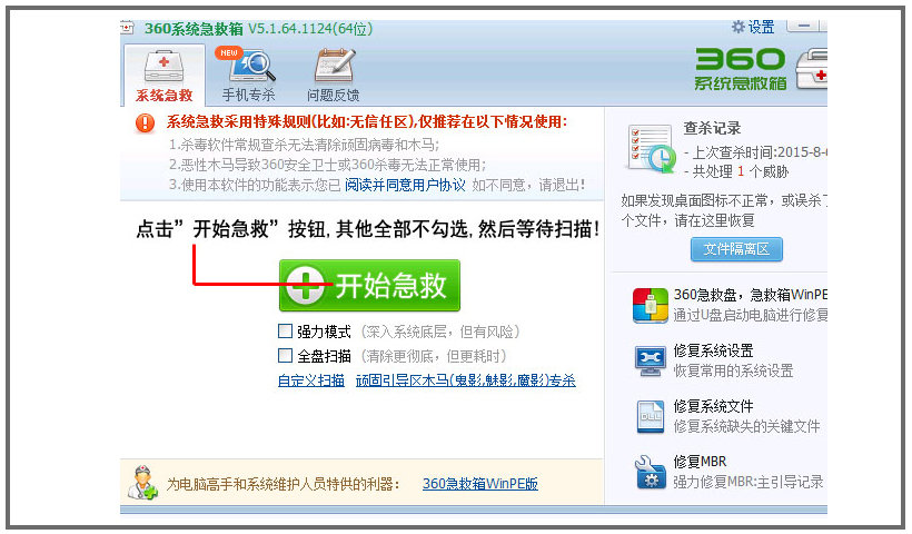 4.点击“开始急救”按钮,其他上什么都不用点。